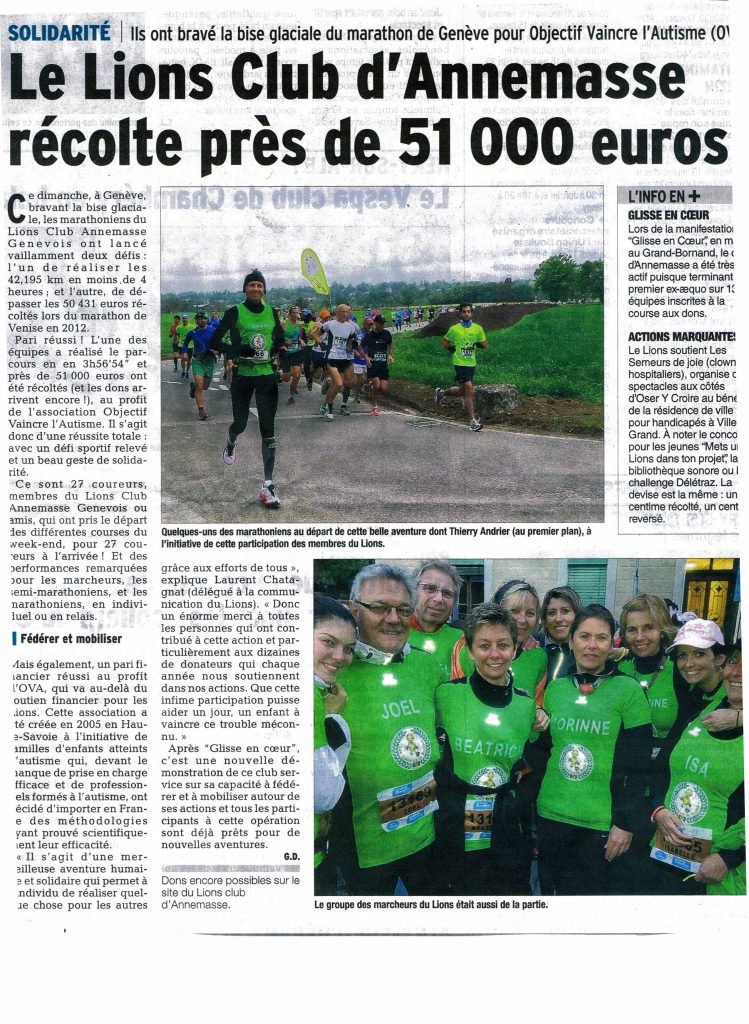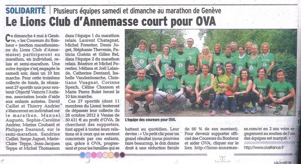Voici nos Lions, plus motivés et nombreux que jamais, qui décident désormais de pérenniser leur action « Les Coureurs Du Bonheur », avec le marathon de Genève qui cumule tous les avantages (proximité, possibilité de courir le marathon, le semi-marathon, le relais-marathon, ou la marche de 10 km).