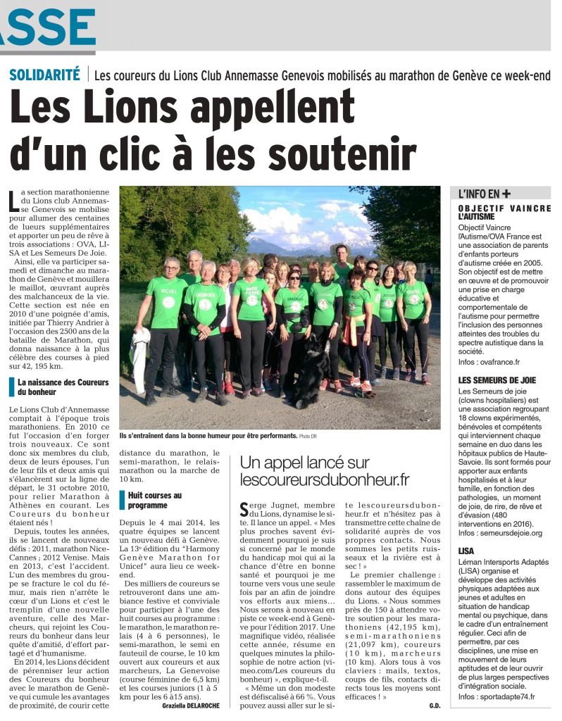 Millésime exceptionnel, pour le centenaire du Lions Club, c’est 157 coureurs du Bonheur, qui ont participé aux différentes épreuves du marathon de Genève le samedi 6 et le dimanche 7 mai.